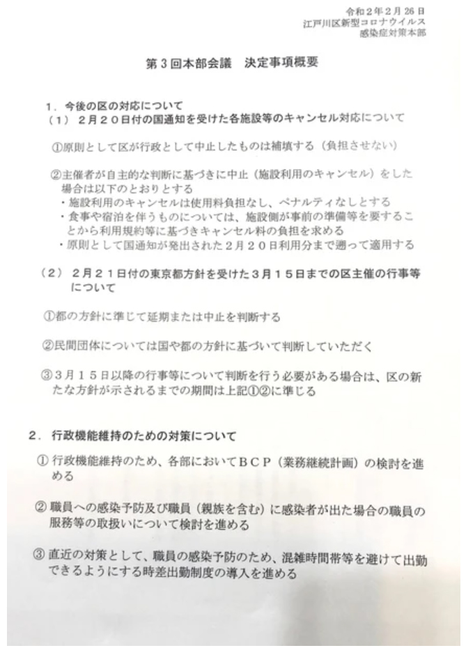 江戸川区の新型コロナウイルス感染症対策本部会議が昨日開かれました。決定事項についてお知らせいたします。(写真)
