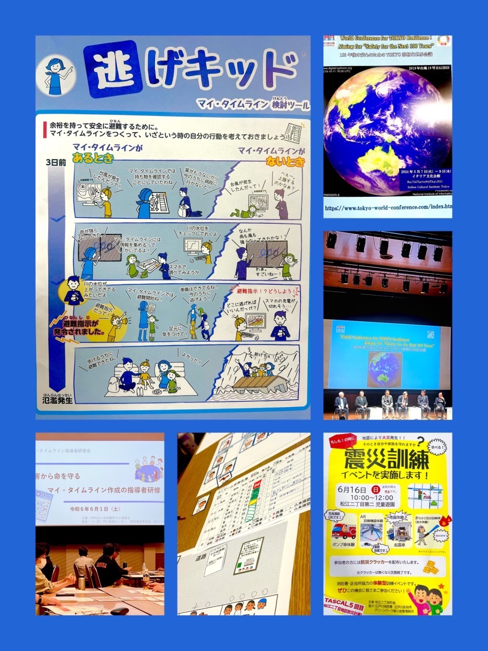 ❷6月1日には、「NPO法人首都圏防災市連絡会」さん主催の、水害時における「マイ・タイムライン」作成の指導者研修会が行われ、河川情報センターの先生の研修を受けてきました。