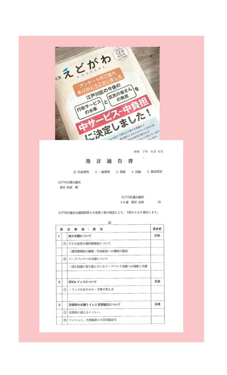「中サービス中負担に決定」と出てから、区政に対する声がさまざま届いています。