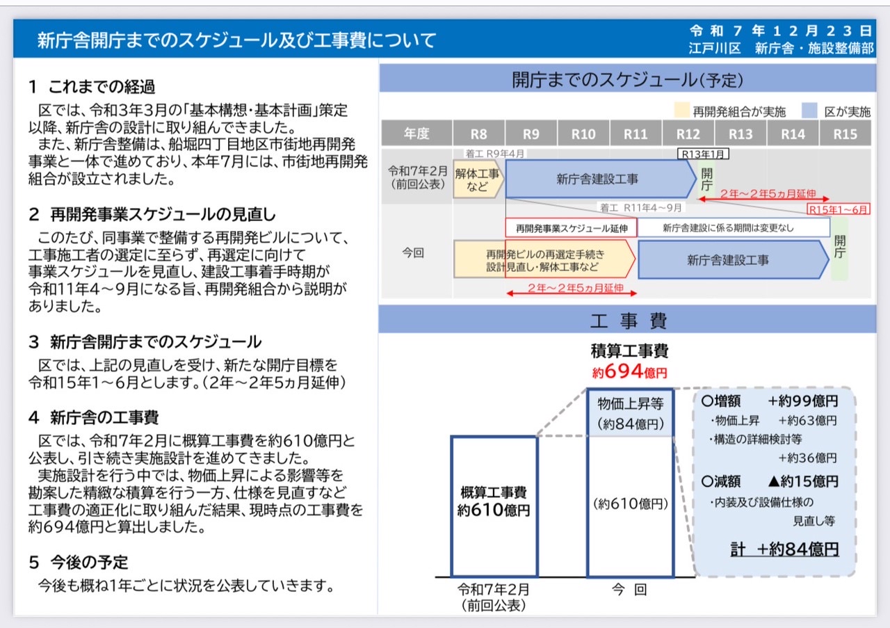 ◾️工事費は、今年2月の公表(610億円)からさらに84億円増額され、694億円の予定です。