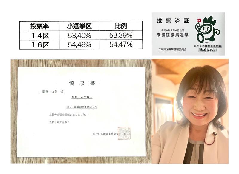 この度の選挙の投票率は写真の通りです。前回令和6年の衆議院議員選挙と比べると、14区は約2%、16区は約3%増えたそうです。しかし、それでも有権者の半分の方しか投票されていません。
