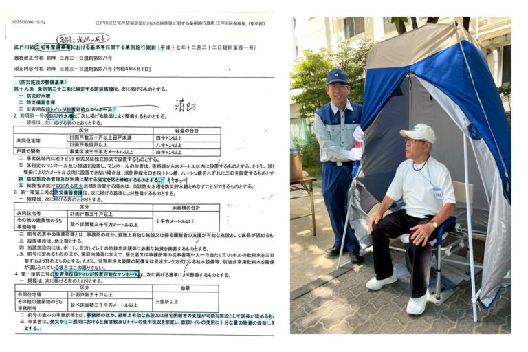 本会議質問のご報告のつづき 【 ❺災害時のトイレにおける防災協定を 】 ①大型店舗や病院、マンションなどと、トイレの開放に関する協定を結ぶことができるように援助を。 ②わたしは、建築説明会のたびに、災害時には、 ・スーパ…