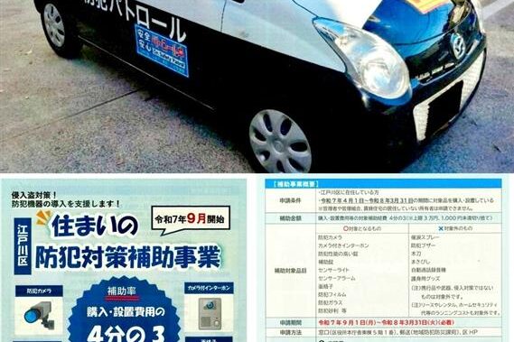 9月1日から申請ができます! 居住している家に防犯対策グッズをつけると、4分の3の補助(最大3万円)が出るようになります! 江戸川区でも、残念ですが犯罪が起きています。先日もひどい事件がありました。犯人は捕まったものの大…
