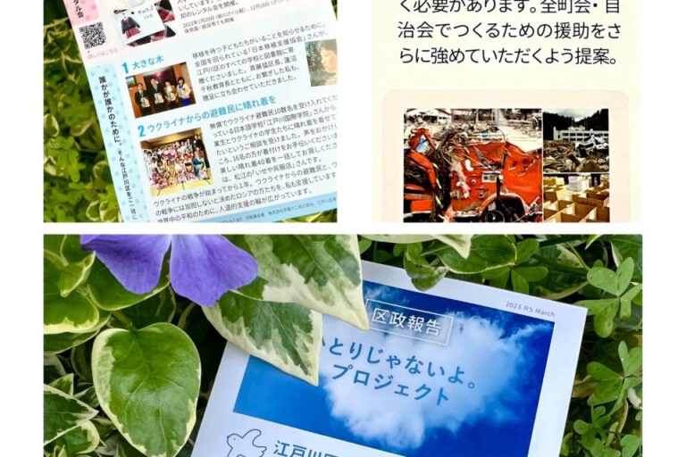 ウクライナの5歳のエバちゃんが「プーチンさん、戦争をやめてください。」と話していました。私たちと同じょうに、普通に暮らしていた人たちに、いきなり銃が突きつけられ、爆弾が落とされ、尊い命が奪われている。 江戸川区にも、…