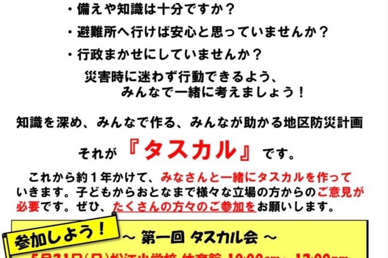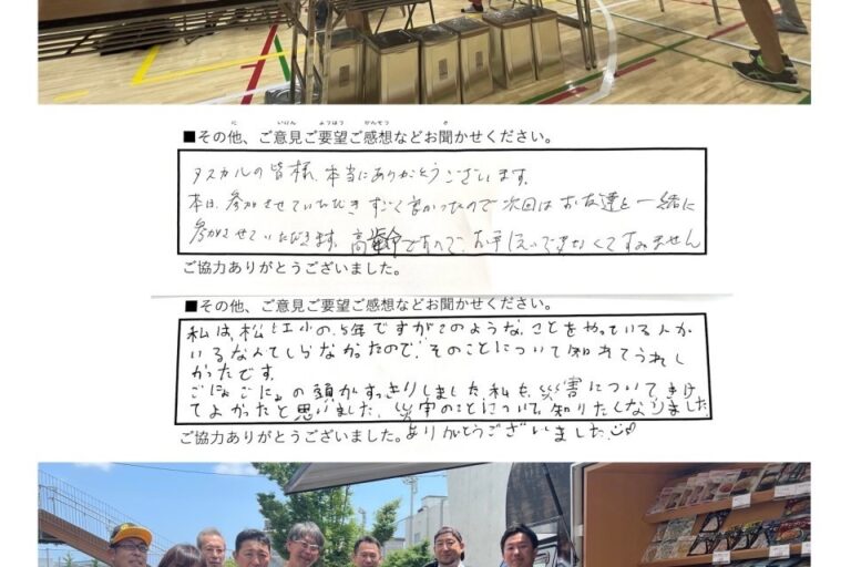 「本日参加させていただき、すごく良かったので、次回はお友達と一緒に参加させていただきます。高齢なのでお手伝いできなくてすみません。」(来て一緒に考えて下さるそのことがタスカル作りです^_^) 「私は松江小の5年生です…