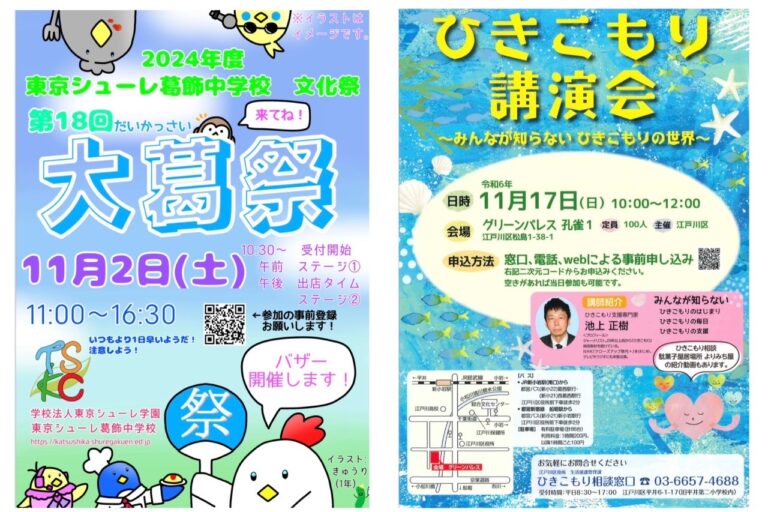 11/17ひきこもり講演会*11/2大葛祭東京シューレ葛飾中学校