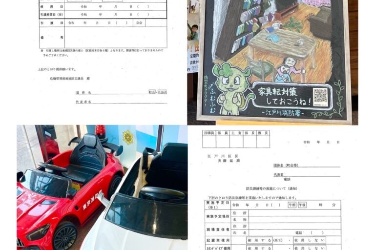 江戸川消防署に入ると、消防車と救急車を模したちっちゃな車があります。可愛い💛 その横には、消防署ならではの黒板アート!すごく上手で、見入ってしまいました。 私の地域では、4町会合同の避難所運営防災訓練に向けて、準備を進め…