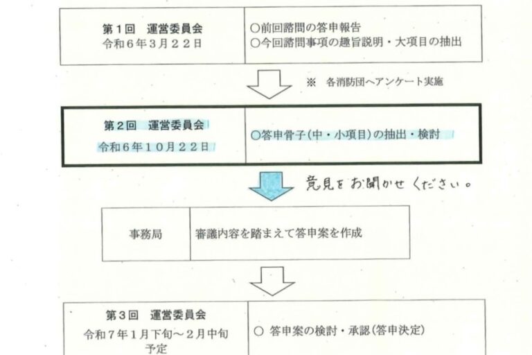 消防団がどうしたら組織力を向上させて、住民の付託に応えられるか。 ということを、都知事から意見を求められたのが、3月の第1回消防団運営委員会でした。 私からは、今回の諮問事項を審議するにあたり、ひとり一人の団員の声を聞い…