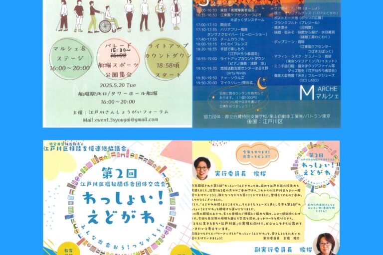 「わっしょい!えどがわ」は、江戸川区の福祉、介護、医療、教育等に携わる人たちがつながって「ともに生きるまち江戸川区」を一緒にもりあげていこう!という手作りのイベントです。今年で2回目。 200人?もっと?事業所の方たちが…