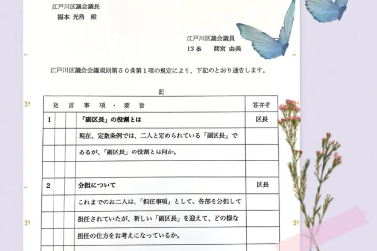 11月222022 江戸川区で初めて、女性である方が副区長に!ステキ!! 議会 ステキ!! 今日から本会議が始まりました。 「議案」の趣旨説明というのがあり、それは副区長が行います。 本日は、初めての、女性副区長!船崎副区長からのご説明でした。 江戸川区は実はとても遅れていて、女性の幹部職員… 記事はこちら