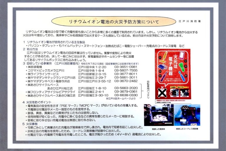 3月182024 リチウムイオン電池から出火する火災は、気をつければ防げます! いろいろ 3月15日夕方、江戸川区の北葛西で火事があり、搬送された人が「リチウムイオン電池が発火した」と説明しているというニュースを見ました。 https://l.smartnews.com/Yn7jE 丁度、江戸川消防署からのチ… 記事はこちら