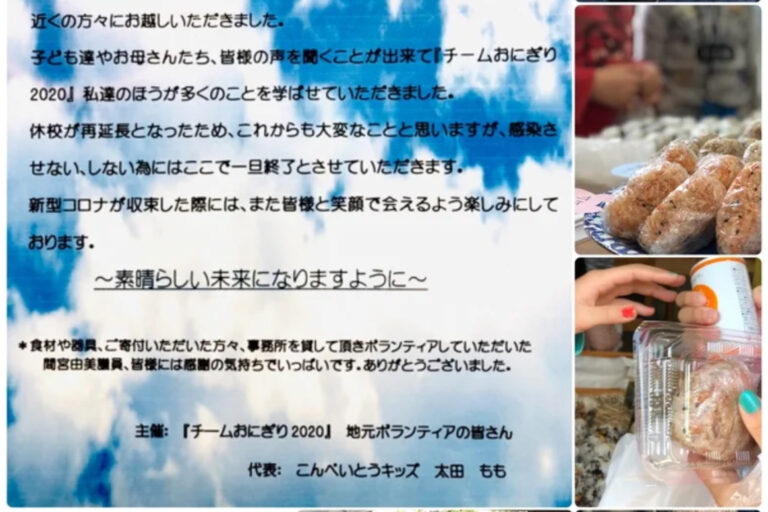 4月102020 22日間、800名の方に届いた善意。チームおにぎり2020 ひとりじゃないよ。プロジェクト おにぎりを一旦終了してからあっという間の1週間。様々緊急対応が必要なこの1週間でしたので、ご報告遅くなりましたことおゆるしください。 【たくさんの方のご協力、ありがとうございました!!**チームおにぎり2020** … 記事はこちら